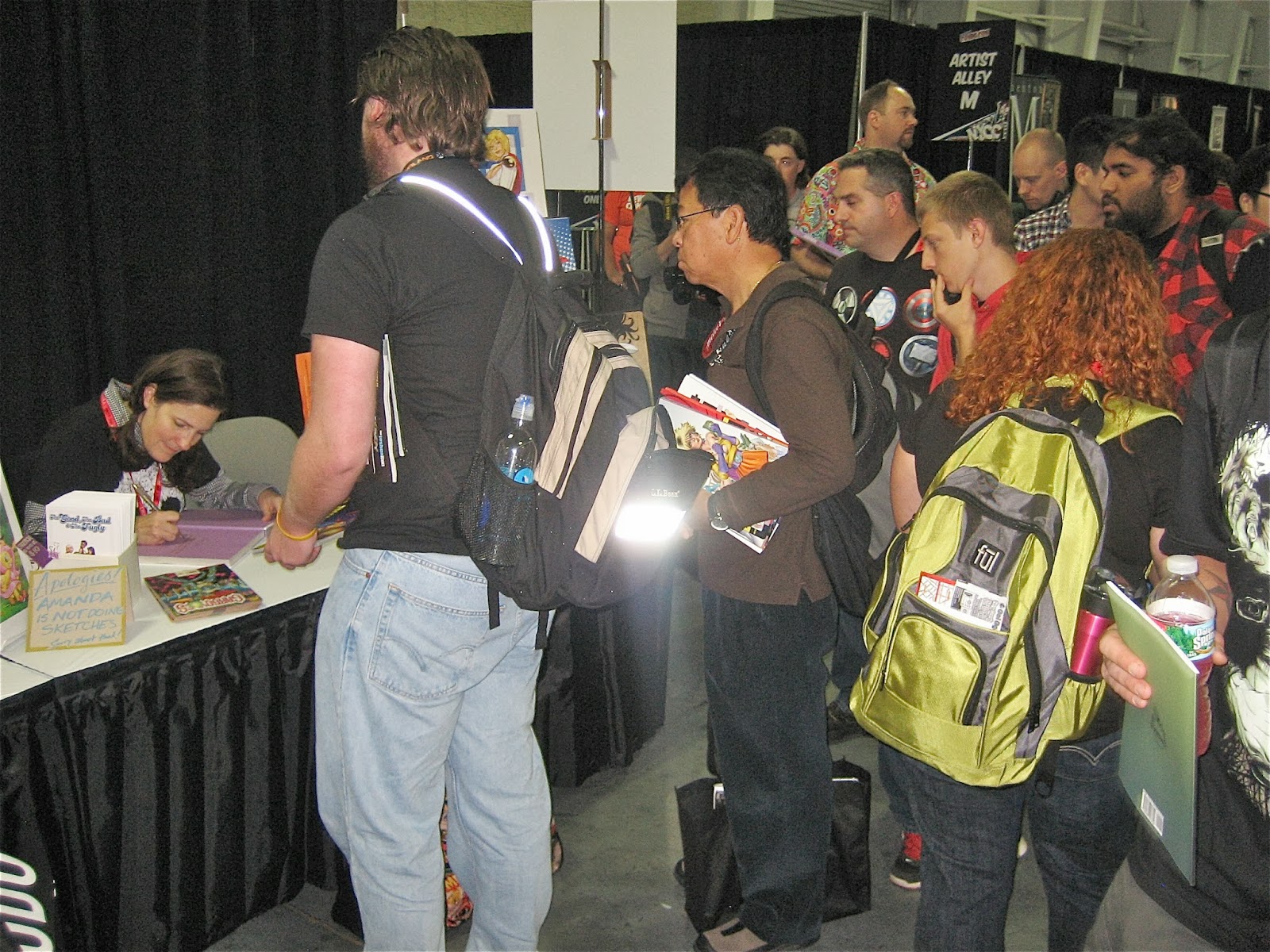 Darwyn Cooke, flanked by gorgeousness. Direct quote: "I feel like an African king!"